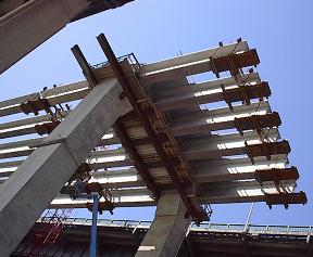 Các trụ tạm sẽ được lắp đặt trên công trường nhằm đỡ các dầm định hình I33 trong quá trình thi công lao lắp dầm. Những trụ tạm này sẽ được điều chỉnh nhằm đạt được cao độ đúng như trong thiết kế.